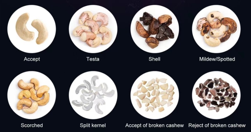 Equipped with high-resolution cameras and advanced AI deep learning algorithms, this sorter accurately identifies and separates cashew nuts by color, size, and surface defects. It efficiently removes discolored, broken, or defective kernels, ensuring a higher yield and consistent product quality for both raw and roasted cashew processing lines.