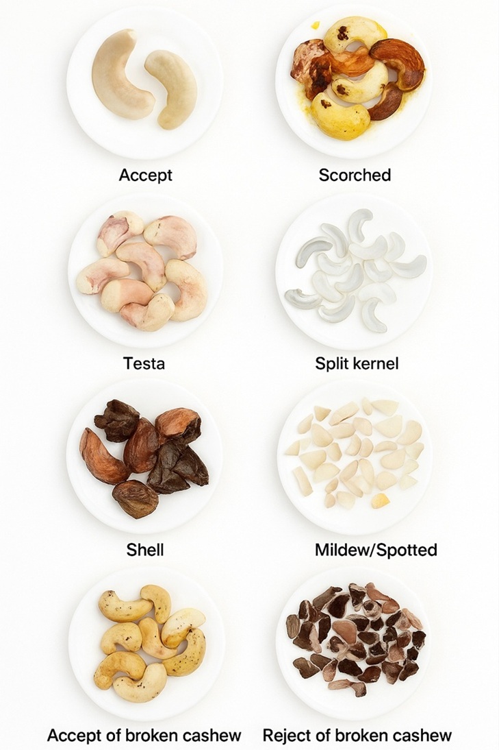 Equipped with high-resolution cameras and advanced AI deep learning algorithms, this sorter accurately identifies and separates cashew nuts by color, size, and surface defects. It efficiently removes discolored, broken, or defective kernels, ensuring a higher yield and consistent product quality for both raw and roasted cashew processing lines.
